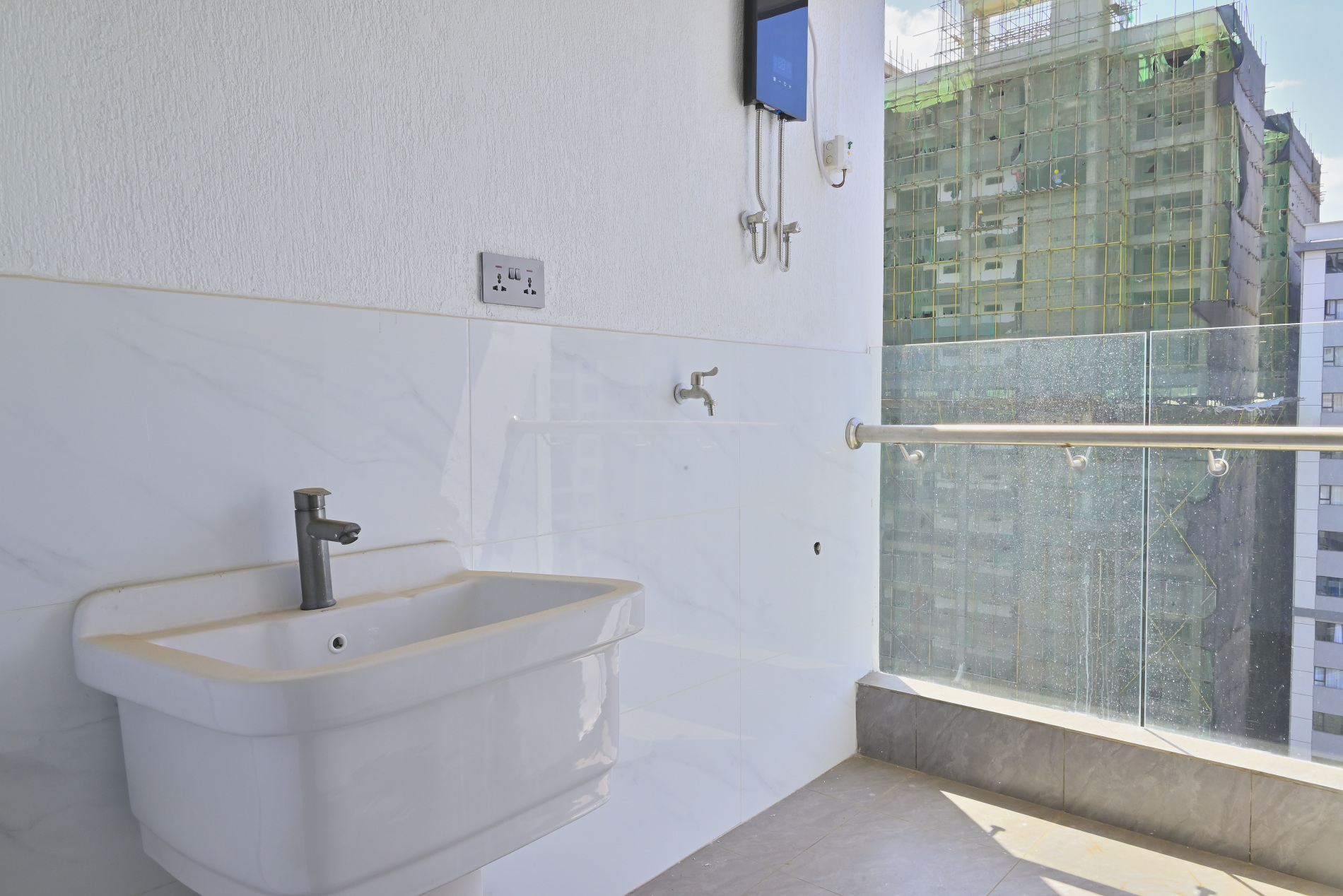 The apartment features a stylish open-plan fitted kitchen flowing into the living area, ideal for relaxed living and entertaining. The master bedroom is ensuite, complemented by a convenient guest cloakroom. A dedicated dhobi area with washing machine provision enhances everyday practicality, while full power backup ensures uninterrupted comfort.